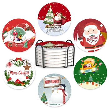Özelleştirilebilir 10.3CM mantar taban Coaster karikatür tasarım su emici mantar Coaster braketi seti